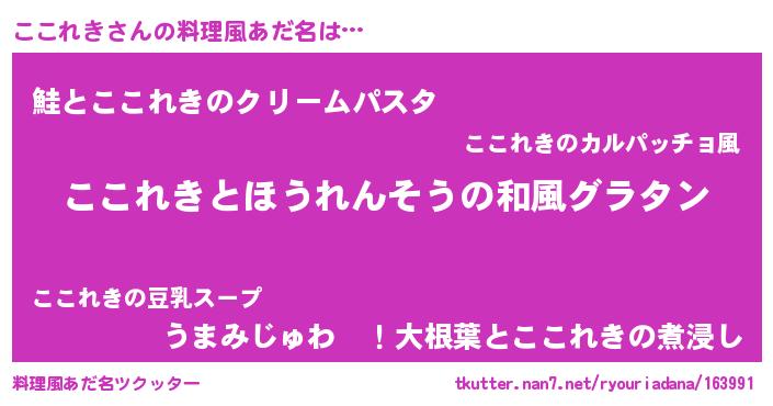 | ヘコむあだ名 | 『なまこ酢』『ここっちょ』 |