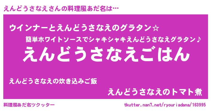 | 欧米人風あだ名 | 『トリンドルえんどうさなえ』 |