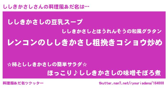 | 肩書あだ名 | 『ししきかさし総統』『ししきかさし社長』 |