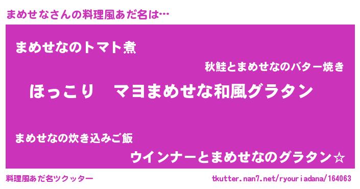 | 男性向けラノベタイトル風あだ名 | 『この素晴らしい世界にまめせなを!』 |