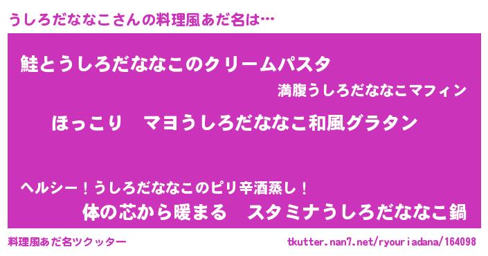 | 男性向けラノベタイトル風あだ名 | 『この素晴らしい世界にうしろだななこを!』 |