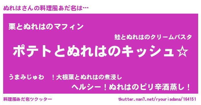 | 意味不明あだ名 | 『とにかく怪しいぬれは』『自称ぬれは』 |