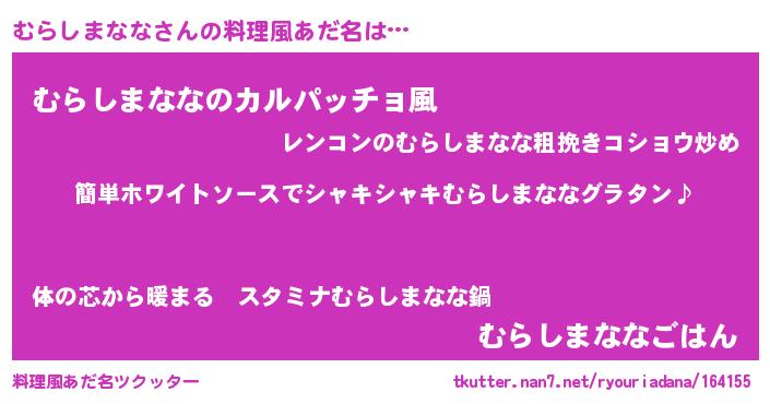 | 男性向けラノベタイトル風あだ名 | 『むらしまななの嫁は女の子じゃないと思った?』 |
