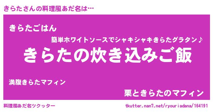| 欧米人風あだ名 | 『きらた・ステッグマイヤー』 |