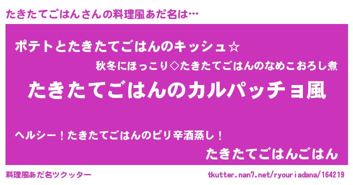 | 意味不明あだ名 | 『住所不定無職たきたてごはん(86歳)』 |