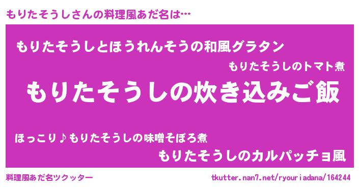 | ヒーロー風カッコイイあだ名 | 『仮面モリダー』『スーパーモリタソウシ』 |