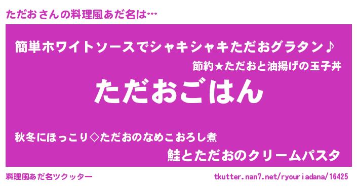 | ヒーロー風カッコイイあだ名 | 『魔戒騎士タダ』『慈愛の使者ただお』 |