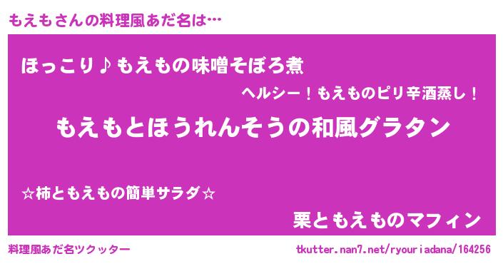 | ヘコむあだ名 | 『もえもー』『牛乳』『もえも(爆)』 |