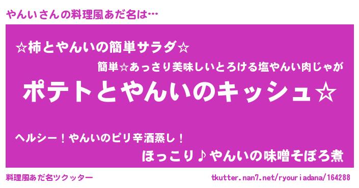 | ヘコむあだ名 | 『やん太郎』『やんっふぃ~』 |
