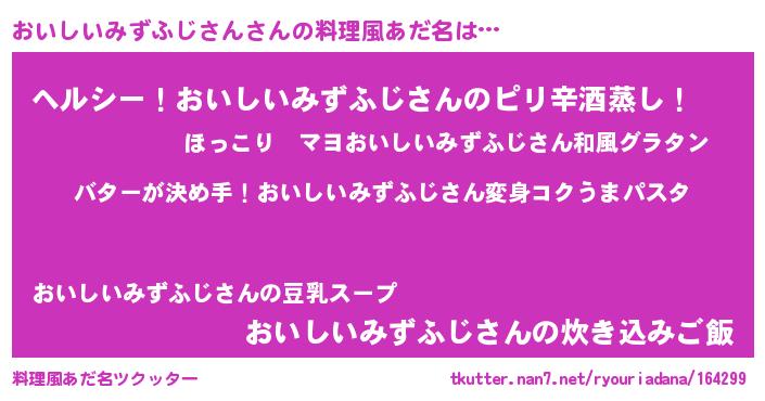 | 女子向けラノベタイトル風あだ名 | 『おいしいみずふじさん恋絵巻』 |