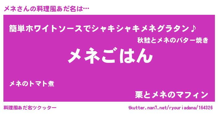 | ポケモン風あだ名 | 『メネキング』『ヒメネ』『メネゴンZ』 |