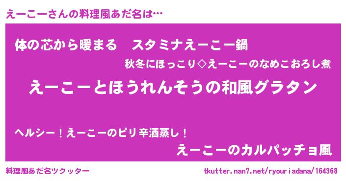 | 意味不明あだ名 | 『もやし科えーこー属』『自称えーこー』 |