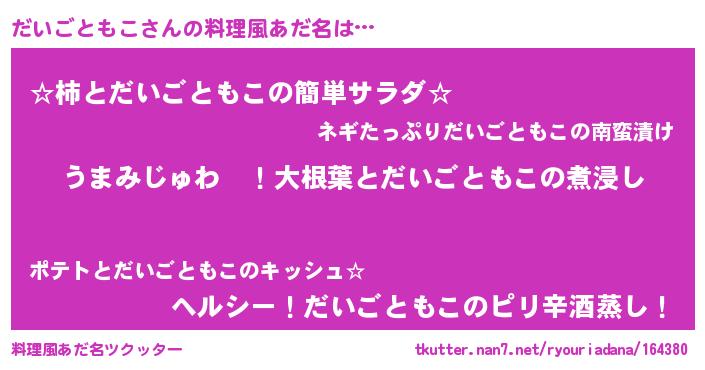 | 意味不明あだ名 | 『だいごともこフォーエバー』 |