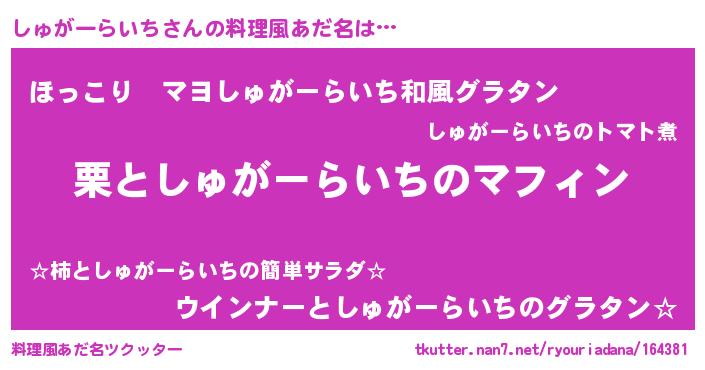| ヒーロー風カッコイイあだ名 | 『仮面シュダー』『ネオシュガーライチ』 |