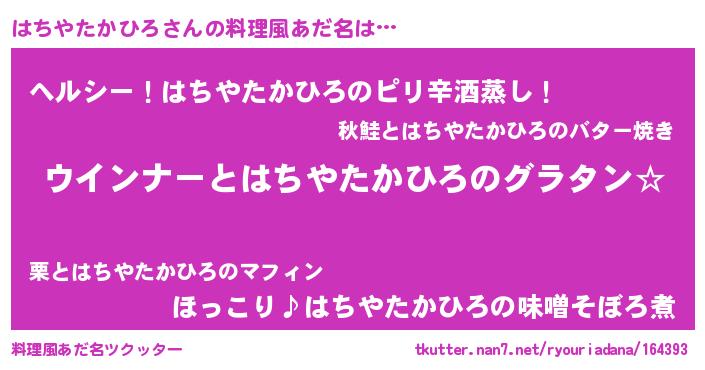 | ヘコむあだ名 | 『なまこ酢』『はちっふぃ~』 |