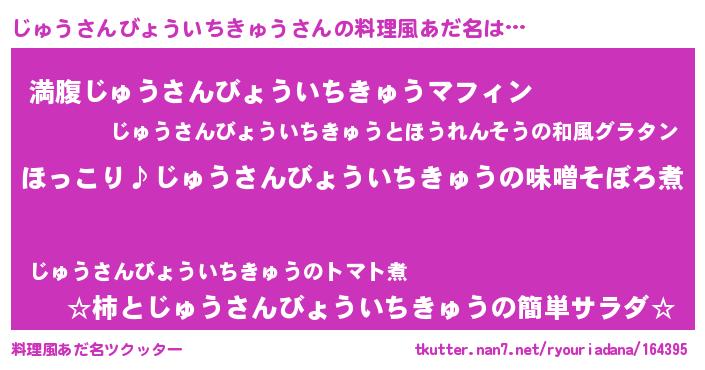| ヘコむあだ名 | 『じゅにゅー』『つくし』『じゅ太郎』 |