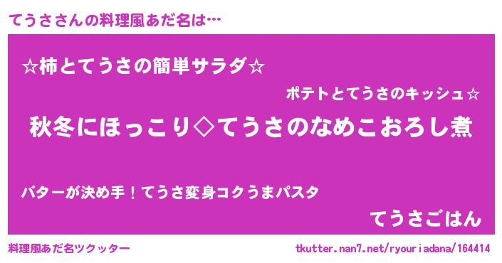 | ヒーロー風カッコイイあだ名 | 『幻影騎士テウ』『友情の使者てうさ』 |