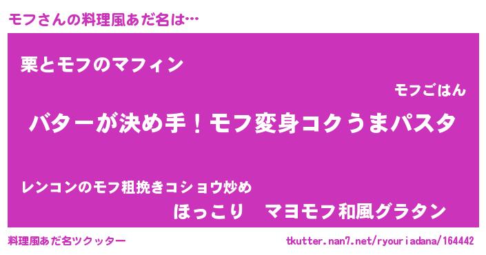 | ヒーロー風カッコイイあだ名 | 『慈愛の使者モフ』『仮面モフダー』 |