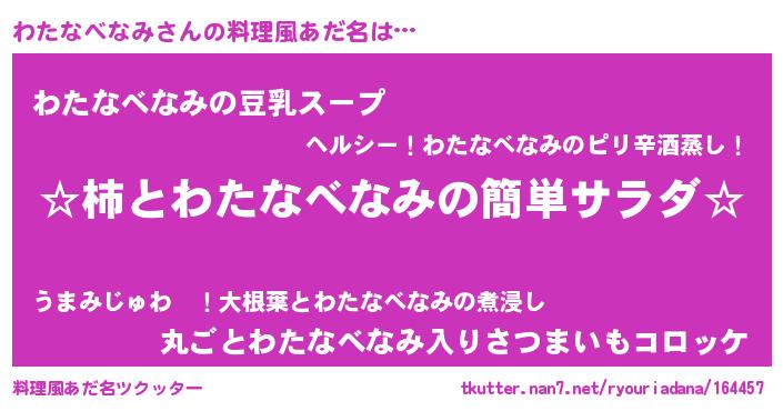 | 意味不明あだ名 | 『とにかく怪しいわたなべなみ』 |