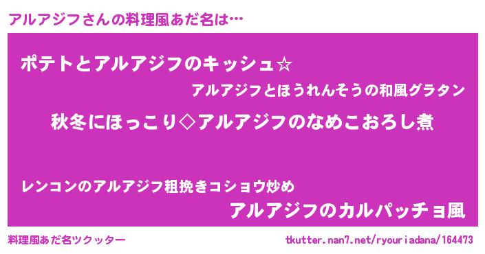 | ポケモン風あだ名 | 『アルゴンZ』『ヒアルアジフ』 |
