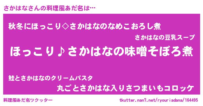 | 意味不明あだ名 | 『ペロリンさかはな』『永久保存さかはな』 |