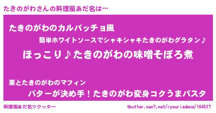 | 意味不明あだ名 | 『ペロリンたきのがわ』『自称たきのがわ』 |