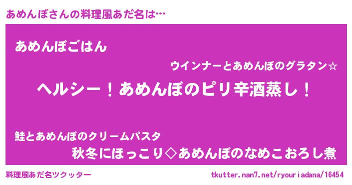 | 男性向けラノベタイトル風あだ名 | 『Re:あめんぼから始める異世界生活』 |