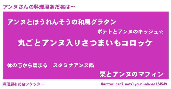 | 意味不明あだ名 | 『住所不定無職アンヌ(71歳)』 |
