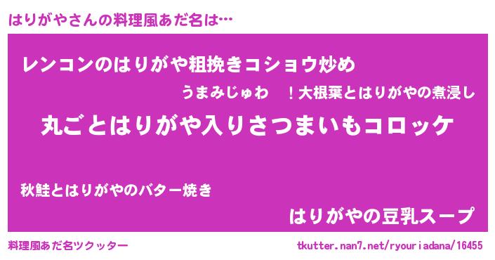 | 男性向けラノベタイトル風あだ名 | 『この素晴らしい世界にはりがやを!』 |