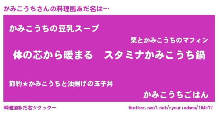 | 女子向けラノベタイトル風あだ名 | 『かみこうちの雑貨屋さん』 |