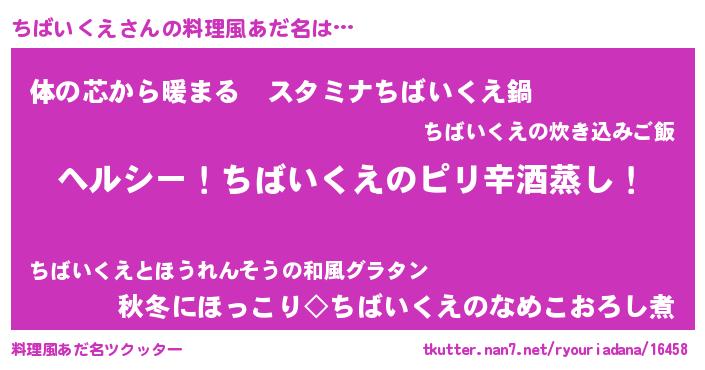 | 意味不明あだ名 | 『自称ちばいくえ』『ニラ科ちばいくえ属』 |
