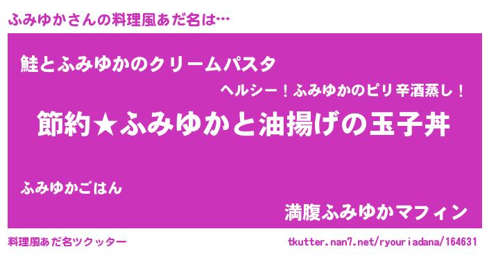 | ヘコむあだ名 | 『ふみにー』『ふみゆか(笑)』『豆乳』 |