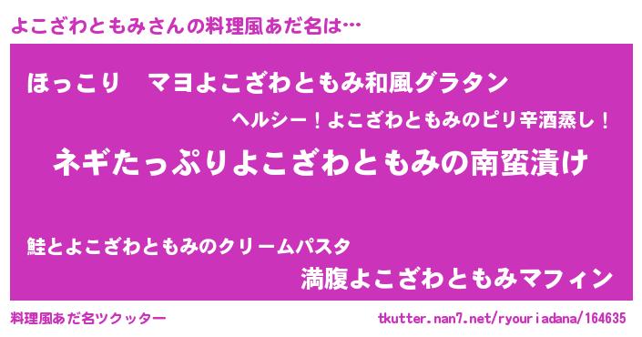 | 恥ずかしいあだ名 | 『プリティーよこざわともみ』『よこちん』 |