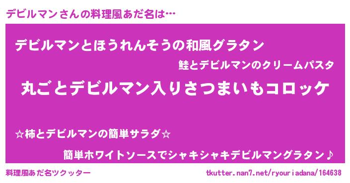 | 女子向けラノベタイトル風あだ名 | 『乙女ゲームの破滅フラグしかない悪役デビルマンに転生してしまった…』 |