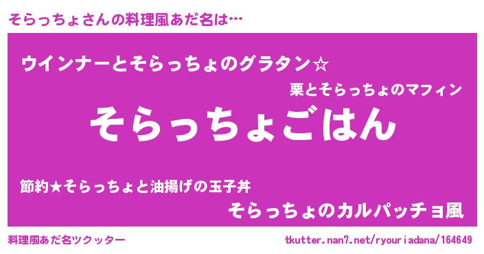 | ヘコむあだ名 | 『豆乳』『そらにー』『そらぷりん』 |