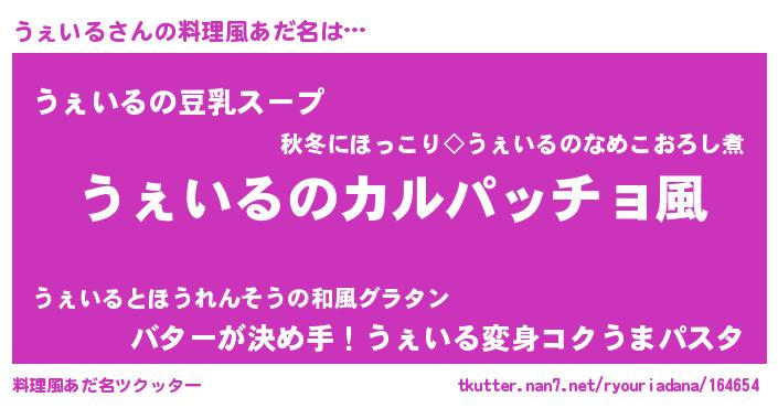 | 意味不明あだ名 | 『住所不定無職うぇいる(56歳)』 |