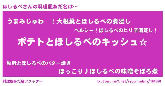 | 胡散臭い通販商品みたいなあだ名 | 『伝統あるサプリメント…その名も「ほしるべ」』 |