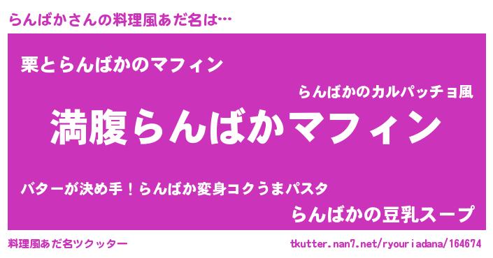 | 胡散臭い通販商品みたいなあだ名 | 『絶対に幸福をもたらす水素水…その名も「らんばか」』 |