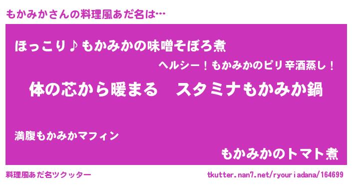 | 女子向けラノベタイトル風あだ名 | 『もかみかの雑貨屋さん』『闇のもかみか』 |