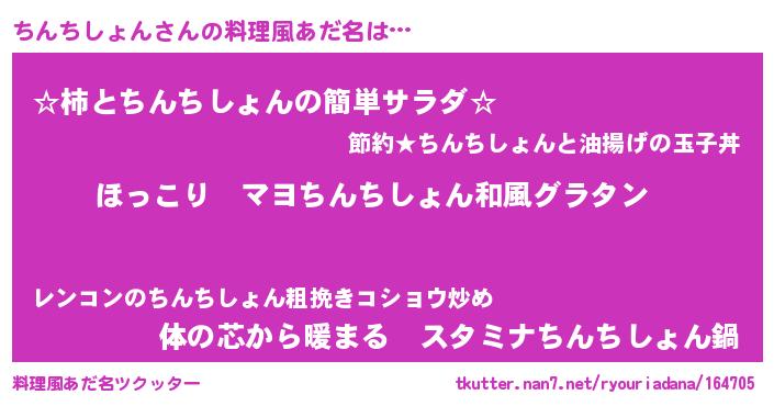 | 胡散臭い通販商品みたいなあだ名 | 『あなたにだけ特別に提供する100年もののヴィンテージワイン…その名も「ちんちしょん」』 |
