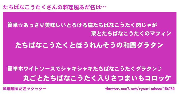 | ヘコむあだ名 | 『たちばなこうたく(笑)』『たちお』 |