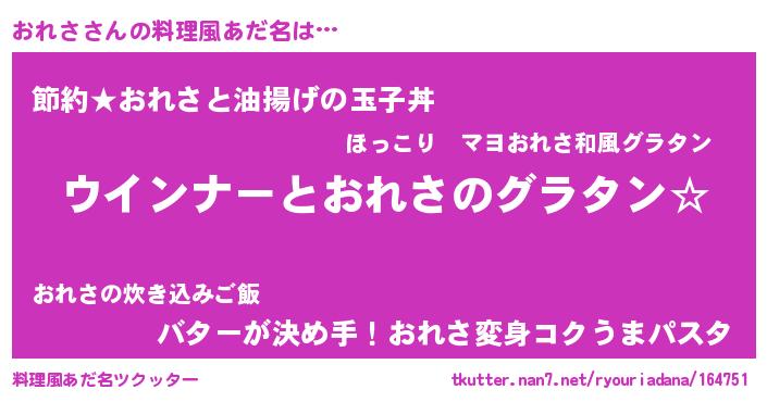 | 女子向けラノベタイトル風あだ名 | 『おれさ伯爵の花嫁』『おれさ恋絵巻』 |