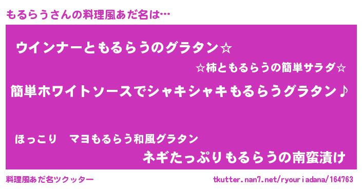 | 男性向けラノベタイトル風あだ名 | 『もるらうの嫁は女の子じゃないと思った?』 |