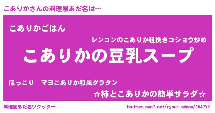 | 胡散臭い通販商品みたいなあだ名 | 『信頼と実績のサプリメント…その名も「こありか」』 |