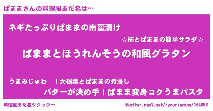 | 女子向けラノベタイトル風あだ名 | 『ぱままの玉の輿計画!』『ぱまま恋絵巻』 |
