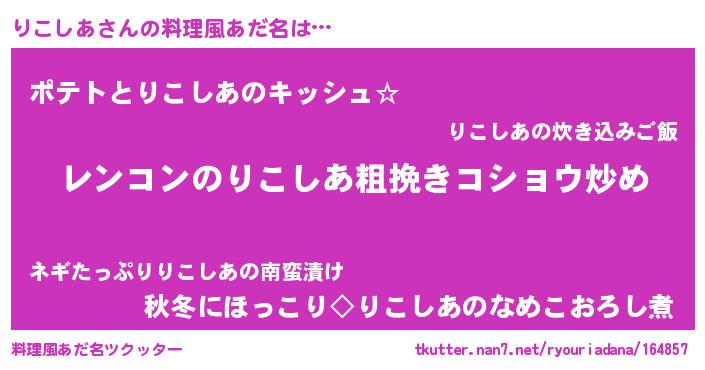 | 意味不明あだ名 | 『自称りこしあ』『ペロリンりこしあ』 |