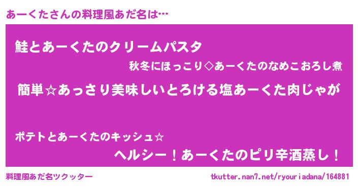 | 意味不明あだ名 | 『永久保存あーくた』『自称あーくた』 |