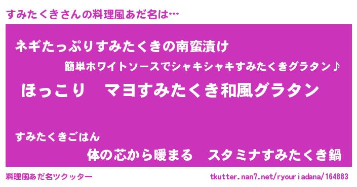 | 胡散臭い通販商品みたいなあだ名 | 『あなたにだけ特別に提供する100年もののヴィンテージワイン…その名も「すみたくき」』 |