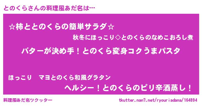 | ヘコむあだ名 | 『とのもー』『豆乳』『との太郎』 |