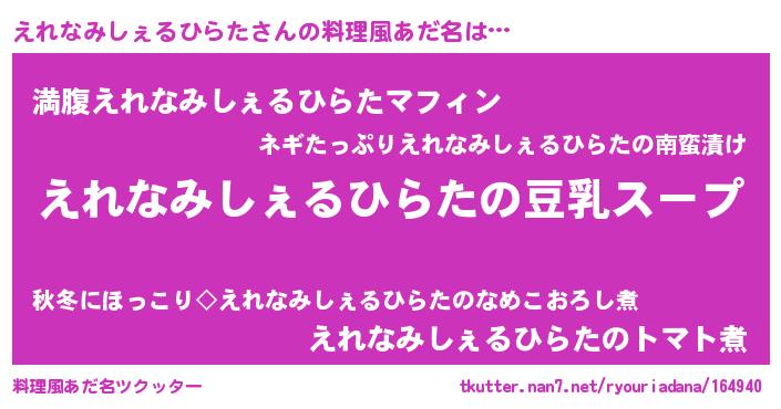| 胡散臭い通販商品みたいなあだ名 | 『信頼と実績のペンダント…その名も「えれなみしぇるひらた」』 |